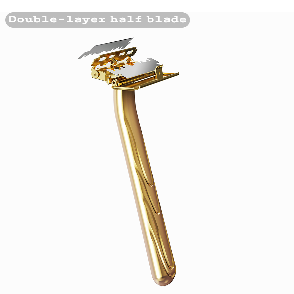 Crafted from premium zinc alloy with strategic anti-slip grooves, this weighty handle provides perfect balance and control. The luxury feel enhances your shaving ritual while ensuring maximum safety and maneuverability.