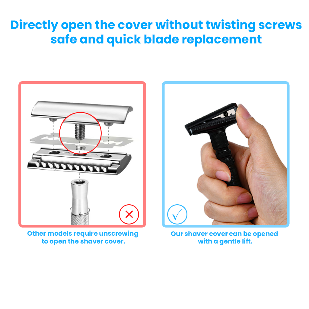 Modular Design: Unlike complex double-blade safety razors, our single-blade safety razor features a magnetic design that allows for quick separation of the blade head and handle, making operation simple. When quickly replacing blades, it also offers a new experience different from traditional razors.