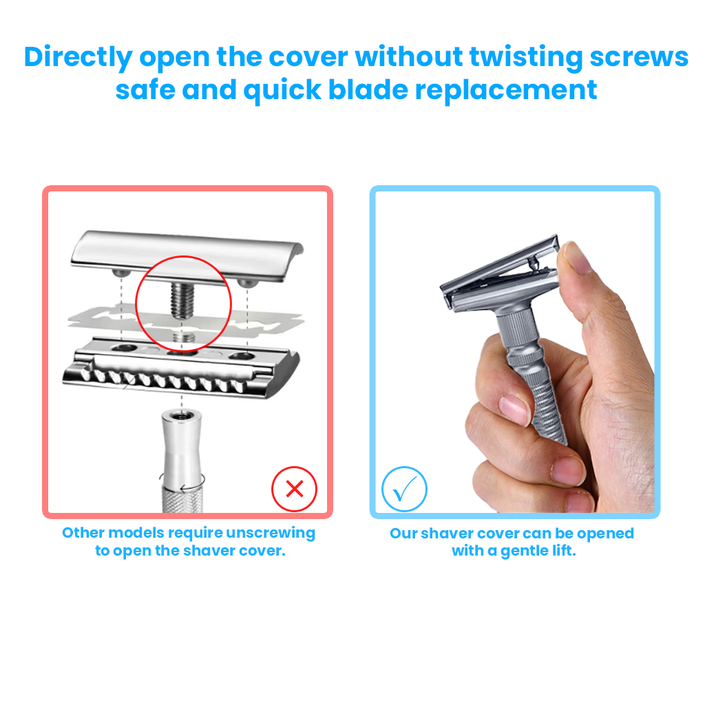 Modular Design: Unlike complex double-blade safety razors, our single-blade safety razor features a magnetic design that allows for quick separation of the blade head and handle, making operation simple. When quickly replacing blades, it also offers a new experience different from traditional razors.